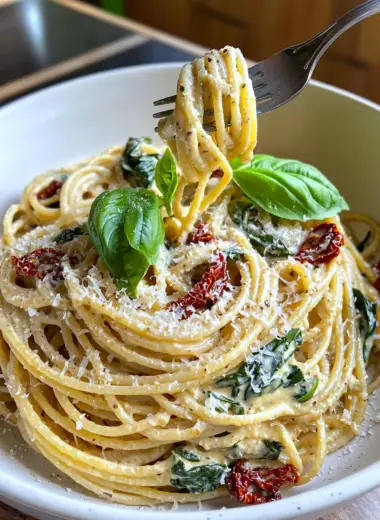 0 commentsIf you’re looking for a creamy, flavorful, and easy-to-make pasta dish, Spaghetti & Spinach with Sun-Dried Tomato Cream Sauce is the perfect recipe to try. This dish combines the rich …